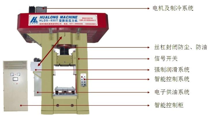 鄭州華隆機(jī)械制造有限公司的螺旋壓力機(jī)采用永磁同步伺服電機(jī)驅(qū)動(dòng)控制, 由框架、飛輪、螺桿螺母、滑塊、潤滑機(jī)構(gòu)、制動(dòng)機(jī)構(gòu)等機(jī)械部分和伺服電機(jī)、電氣控制柜、操作按鈕站等電氣部分構(gòu)成。是摩擦壓力機(jī)的更新?lián)Q代產(chǎn)品。